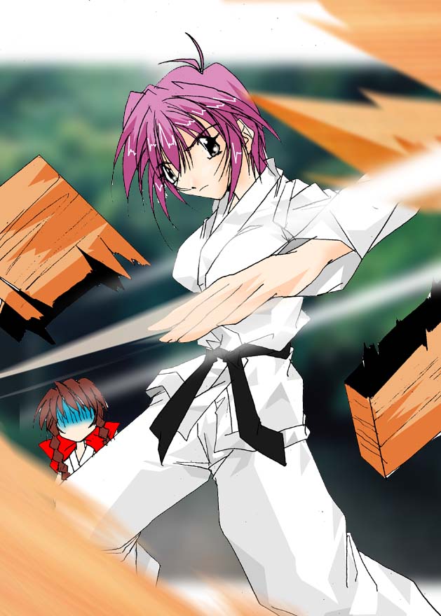 麗奈「沙希ちゃん、恵梨さんと対戦するって、本気?」 沙希「修行は実戦感覚も大切なのですゥ、」 恵梨「うりゃ!!!」 バキッ!! 恵梨「で、あたしは『組み手』に付き合えば良い訳?。」 沙希「え・・・・いや〜・・・その・・・・。」 恵梨「何?って軽いウォ−ミングアップだけど、何?」 沙希「軽く・・・ですか・・」 麗奈「沙希ちゃん、悪い事は言わないからやめておいた方が良いんじゃない?」 涼子「恵梨さんの攻撃力は折り紙付ですからね。」 恵梨「さーて、んじゃそろそろやろうか?沙希ちゃん。」 沙希「待ってください!ここは少し修行内容を変更しましょう。」 恵梨「うにゃ?」 |