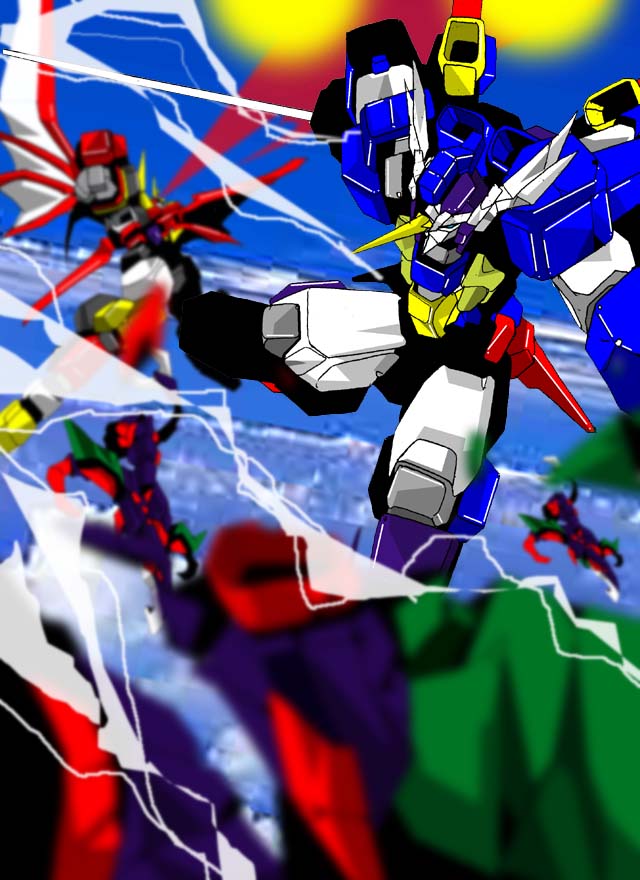ニュースを聞きつけ急ぎ救出へと向う、グリファリアス、ドラグカイザー、キンググランクロス妖魔獣軍団との激しい空中戦を繰り広げる