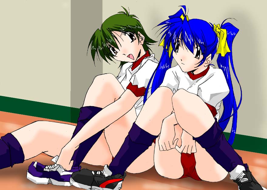 月曜日、体育の時間、今日は2年生の女子と体育館を半分づつ使っての授業だった。 うちのクラスはマット運動で向こうの2年生はバスケットか・・・ん?あれ今試合しているチームの中にいるのは・・・ あっ恵梨さんもこっちに気が付いたみたい。 恵梨「ヤッホー麗奈ちゃ〜ん!!」 そ・ぞんな大声で・・・・・・・・おかげでみんなの視線があたしに集まる「はははは・・・・・・・」とりあえず手を振って見る・・・ 恵梨「見ててね〜麗奈ちゃんの為に愛のダンクシュート決めちゃうから!」 恵梨「ほえ?」 え・恵梨さん!!あたしに向かってビシっっとポーズを決めていた所にボールが飛んできて 恵梨「あいたた・・・・鼻打っちゃった・・・・」 女子生徒「恵梨!何やってんのよ!」 恵梨「ごーめーん、直ぐに取り戻すから許して〜」 ふう・・・なんとか無事みたい・・もうっ恵梨さんらしいんだから・・・でも愛のダンクって・・・・・・ |