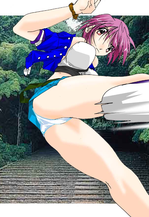 土曜日、麗奈達は黒い魔甲鬼神と謎のロボットの事など 恵梨「そだ、そーだ、たまには御参りでもして行くかなーなんてねー。」 ファリアス「いきなり神頼みか!!!」 恵梨「まあ、まあ、5円で事が解決したらラッキーじゃない。」 ファリアス「・・・・・・・・・」 恵梨「あっ今5円をバカにしたっしょ!。いい、ファリアス5円って言うのはね御縁があるように、て言って」 ファリアス「はい、はい・・・・・・・はあ・・・」 恵梨「もう!ファリアスが罰当たりな事言うから願いが叶わなかったらどうすんのよ!。」 なでなで、 恵梨「なでなでって・・・おしりの辺りが・・・?」 ???「いやー最近の若い娘は発育が良いのお^^いや〜健康的な良い尻じゃ。」 慌てて振り返る恵梨の前には丸いサングラスをかけた老人が立っていた 恵梨「うう!!白昼堂々痴漢とは!!!」 言うが早いか恵梨の正拳がうなりを挙げる!だが老人はそれを難無くかわしてみせる 恵梨「嘘っ?!あたしの拳をかわした・・・・」 ???「ひょ〜危ない、あぶない^^A。」 慌てて振り返る恵梨の前には丸いサングラスをかけた老人が立っていた 恵梨「くうう!!!この!この!!この!!!」 裏拳、正拳、肘打ち!!っと続く恵梨のコンボ 恵梨「嘘っ?!あたしの拳をかわした・・・・」 ???「おっ!ほっ、はっと!よっ。」 恵梨「ううううううう!!!こんのぉ!!!!」 ???「ほほ!!こりゃまた健康的な脚線美^^」 |